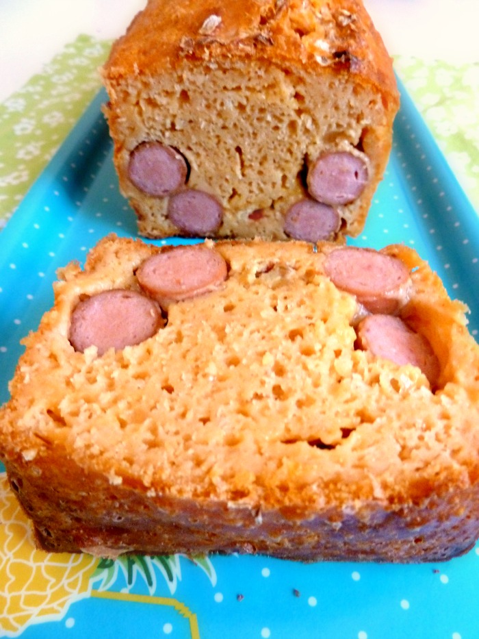 Les knackis sont tombées au fond, et l’aspect visuel est beaucoup moins joli que sur le site d’origine, mais je pense que ma pâte était plus liquide. Néanmoins, l’ajout de la ketchup dans la pâte nous a séduits et je recommencerai (avec plein de sauces différentes!) pour sûr