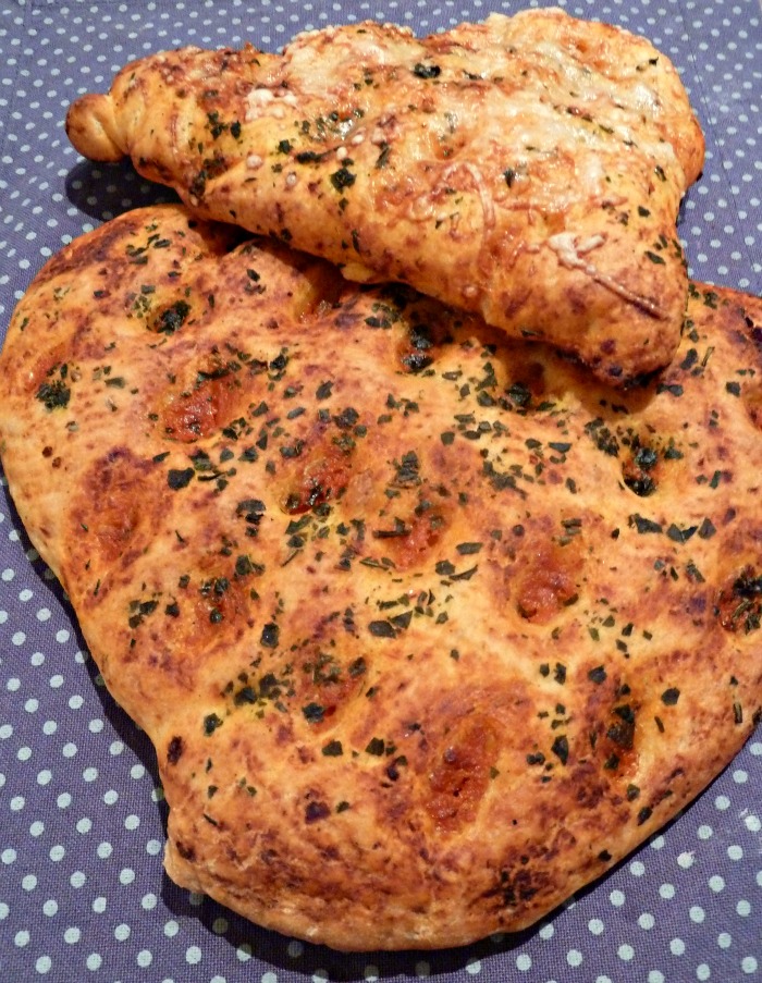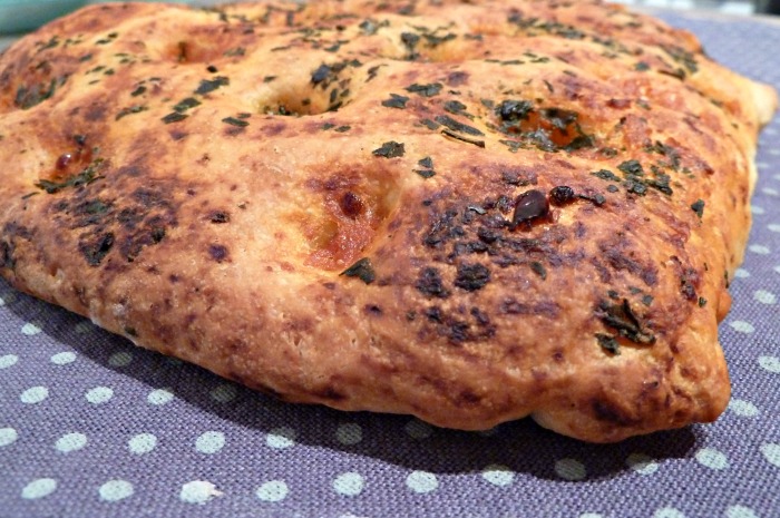 Celle-ci, que j’ai trouvée ici, est moelleuse, délicieuse, et peut-être pas tout à fait italienne car elle n’est pas enduite seulement d’huile d’olive et d’herbes , mais c’est ce que je vous répète, la cuisine c’est fait pour s’amuser et faire un peu ce que l’on veut