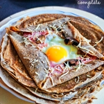 Par contre, côté garniture, on s’est régalés ! J’ai hésité à vous poster les recettes, mais finalement, pourquoi pas !  Voici donc deux compositions qui nous ont bien plu, les galettes complètes et les galettes savoyardes